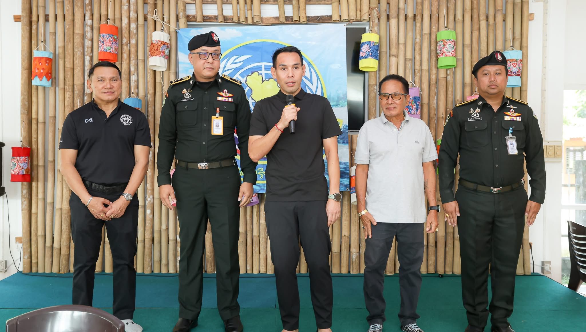 นายเฉลิมพล เกิดทรัพย์ นายก ทต.ศรีสุนทร พร้อมด้วยนายจำรัส ดวงจิตต์ รองนายก ทต.ศรีสุนทร ดร.วัชรินทร์ เจตนานนท์ เลขานุการนายกฯ สมาคมสันนิบาตรเสรีแห่งประเทศไทย และเจ้าหน้าที่