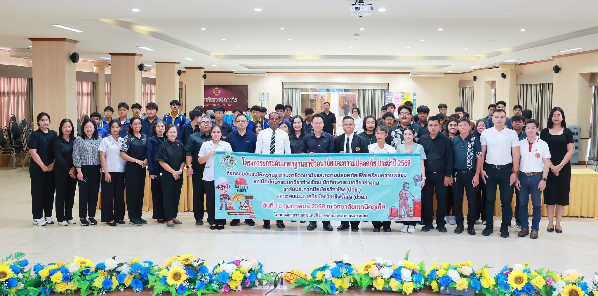 สำหรับ โครงการยกระดับมาตรฐานอาชีวอนามัย ประจำปี 2569 กิจกรรมอบรมให้ความรู้ด้านอาชีวอนามัยและความปลอดภัย เพื่อเตรียมความพร้อมในการประกอบอาชีพ ให้แก่นักศึกษาแผนกวิชาช่างเชื่อมและแผนกวิชาช่างกล ระดับประกาศนียบัตรวิชาชีพ (ปวช.) และระดับประกาศนียบัตรวิชาชีพขั้นสูง (ปวส.) วิทยาลัยเทคนิคภูเก็ต เทศบาลนครภูเก็ต จัดขึ้นเป็นประจำทุกปี ให้ความรู้ด้านอาชีวอนามัย หลักความปลอดภัยในการทำงาน การป้องกันอันตรายจากการทำงาน การใช้อุปกรณ์ป้องกันส่วนบุคคล (PPE) และกิจกรรมเชิงปฏิบัติการ (Workshop) เพื่อเสริมสร้างความรู้ ความเข้าใจ และสามารถนำไปประยุกต์ใช้ในการประกอบอาชีพได้อย่างเหมาะสมและปลอดภัย.