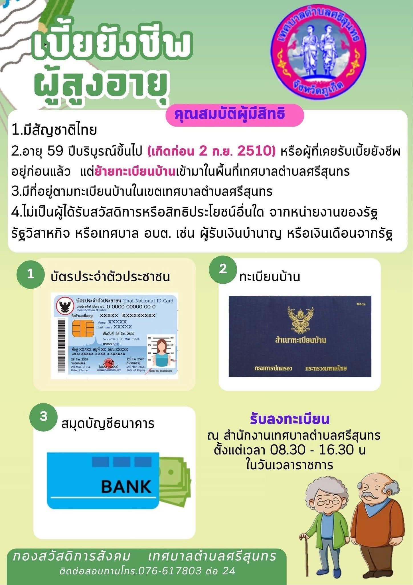 ทต.ศรีสุนทร #ประชาสัมพันธ์ การลงทะเบียนรับเงินเบี้ยยังชีพผู้สูงอายุ
