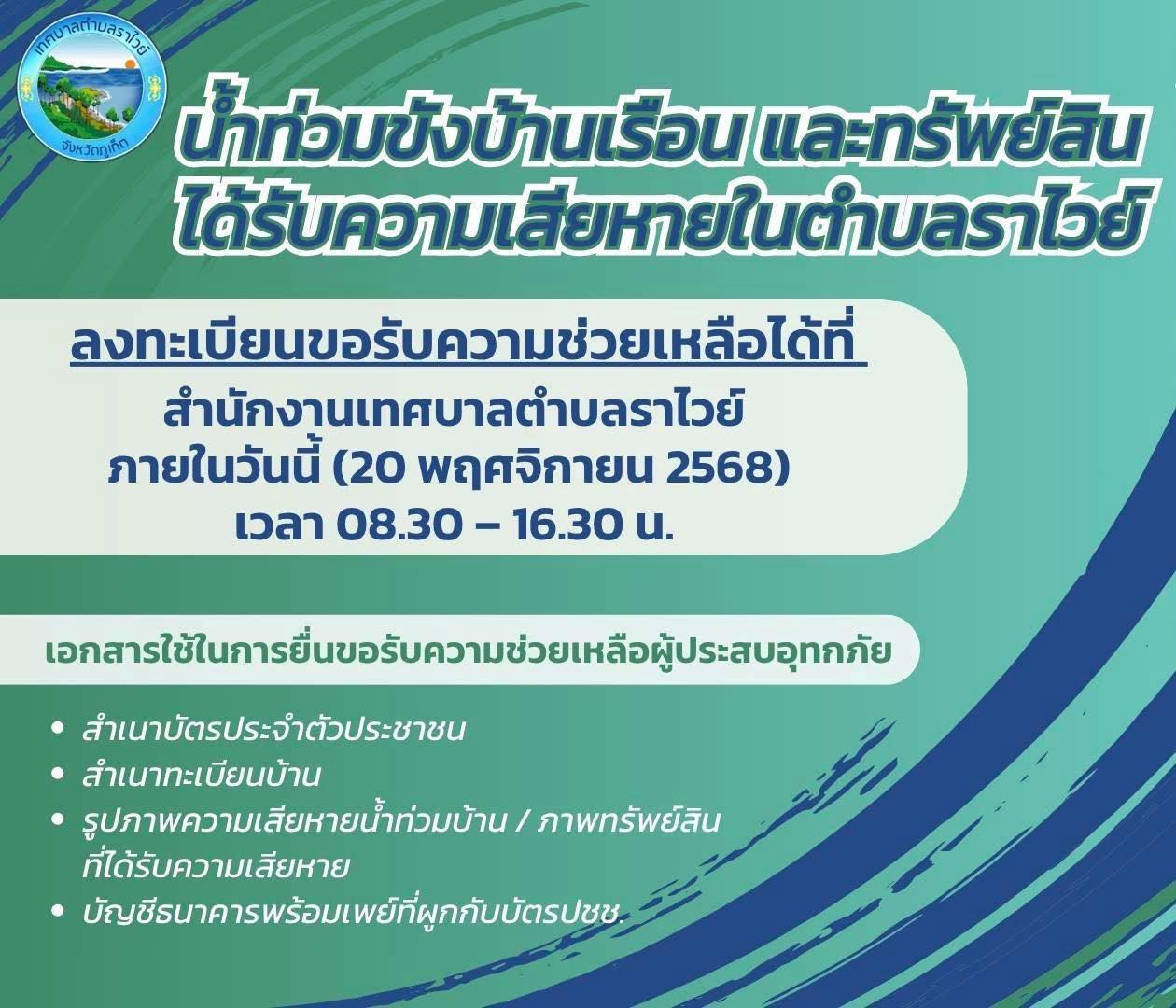 ประกาศจากเทศบาลตำบลราไวย์ #น้ำท่วมขังบ้านเรือนและทรัพย์สินได้รับความเสียหาย ในตำบลราไวย์