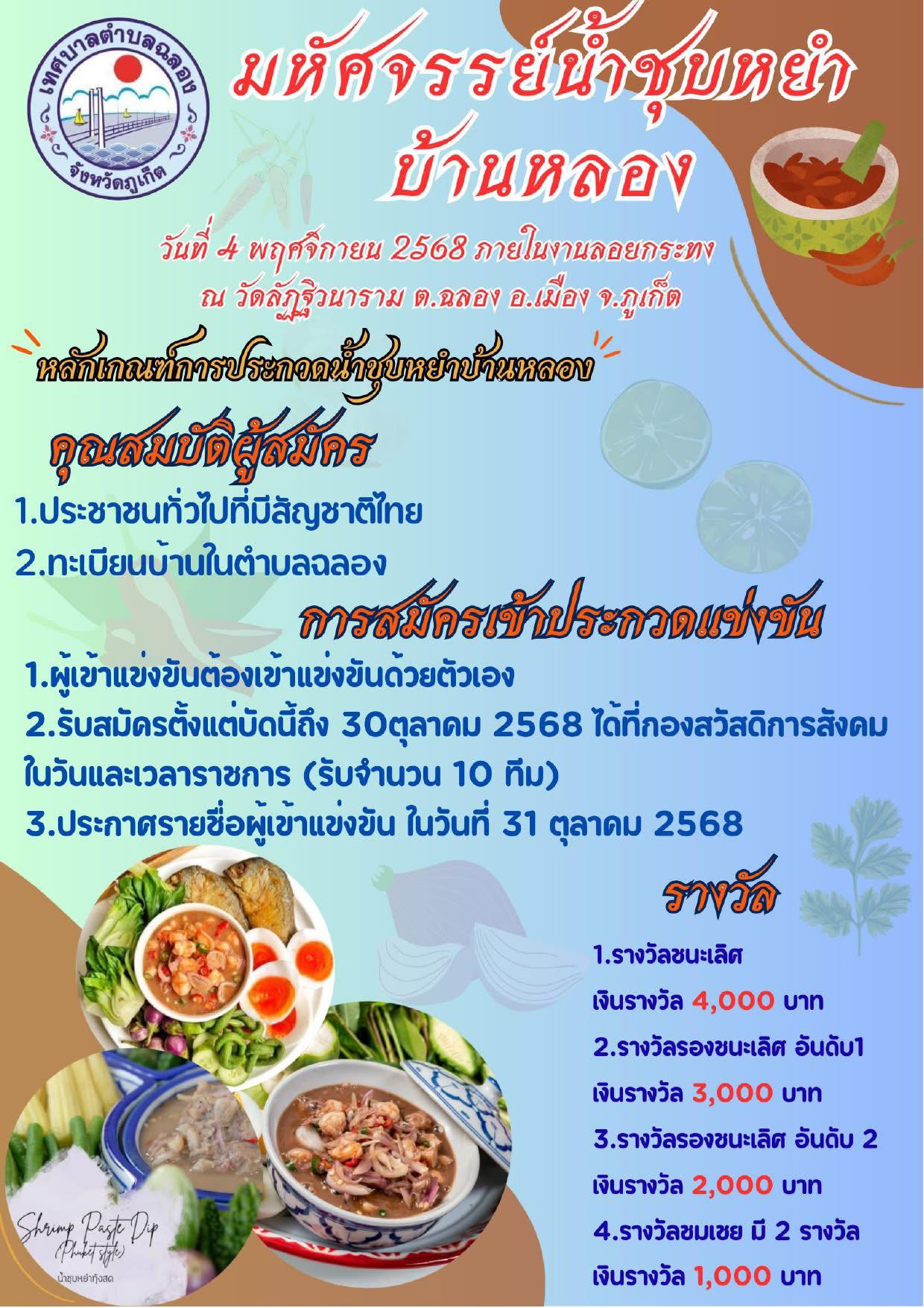 เทศบาลตำบลฉลองเชิญร่วมงาน “มหัศจรรย์น้ำชุปหยำ บ้านหลอง” ชิมรสเด็ดพร้อมแข่งขันเมนูพื้นถิ่น