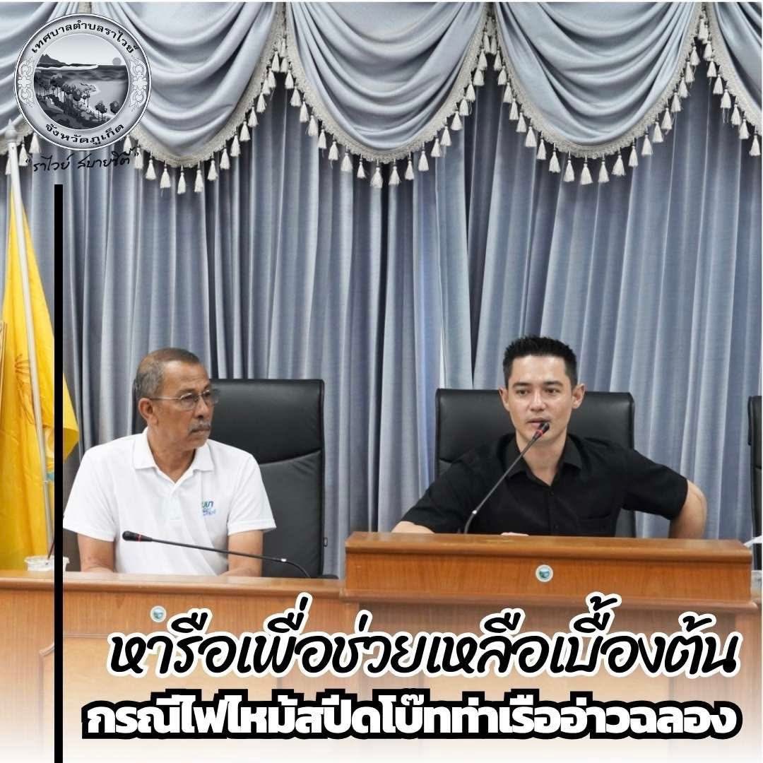 ทต.ราไวย์ หารือเพื่อช่วยเหลือในเบื้องต้น กรณีไฟไหม้สปีดโบ๊ทท่าเรืออ่าวฉลอง
